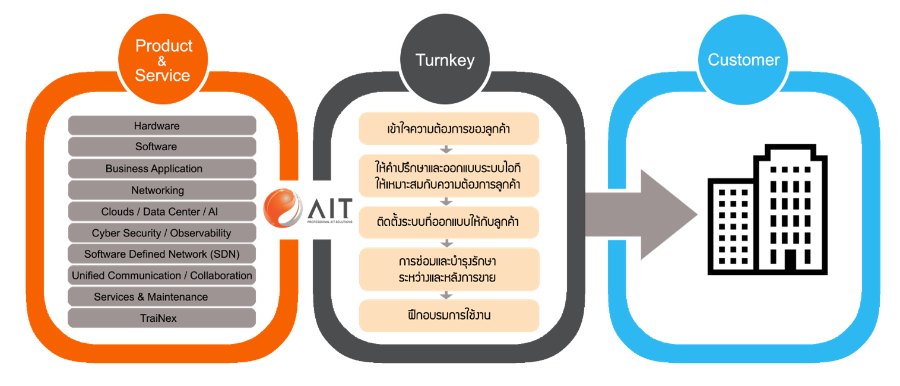 บริษัทฯ ดำเนินธุรกิจให้บริการด้านเทคโนโลยีสารสนเทศและการสื่อสารแบบครบวงจร หรือ System Integrator (“SI”) และเป็นธุรกิจหลักที่สร้างรายได้ในสัดส่วนกว่า 70% โดยเป็นผู้ออกแบบระบบคอมพิวเตอร์และระบบสื่อสารคอมพิวเตอร์ให้สามารถทำงานร่วมกันได้อย่างมีประสิทธิภาพและมีประสิทธิผล ตรงต่อความต้องการงานของลูกค้า โดยมีระบบที่ให้บริการประกอบไปด้วย คอมพิวเตอร์ฮาร์ดแวร์ ซิสเต็มส์ซอฟต์แวร์ แอพพลิเคชั่นซอฟต์แวร์ และอุปกรณ์ระบบเครือข่ายคอมพิวเตอร์ โดยบริษัทฯ มีลักษณะการขายแบบเบ็ดเสร็จ หรือ เทิร์นคีย์ (Turn Key) ตั้งแต่การทำความเข้าใจถึงความต้องการของลูกค้า การให้คำปรึกษา การวางแผนงานโครงการ การออกแบบระบบ การดำเนินการการติดตั้ง การซ่อมบำรุงรักษา ตลอดจนมีการฝึกอบรมเพื่อสร้างความเข้าใจในการใช้งาน แสดงได้ดังแผนภาพ 1.1 ส่วนที่เหลือเป็นกลุ่มธุรกิจใหม่ที่เน้นไปทางด้านวิศวกรรมพื้นฐานที่ต่อยอดธุรกิจบนฐานลูกค้าเดิม เช่น การสร้างสถานีไฟฟ้า (Substation) เป็นต้น ด้านวิศวกรรมพื้นฐานเกี่ยวกับสายงานไอซีที เช่น การเดินสายสัญญาณร้อยท่อลงดิน เป็นต้น และด้านวิศวกรรมปัญญาประดิษฐ์ (Artificial Intelligence) บิ๊กดาต้า (Big Data) และ Business Intelligence (BI) เช่น การรายงานในเชิงวิเคราะห์ข้อมูลเชิงธุรกิจ เป็นต้น